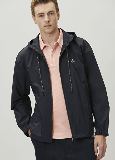 Kapüşonlu, fermuar kapatmalı, logo detaylı mont