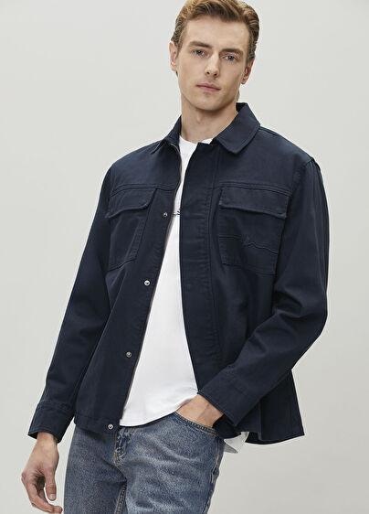 Klasik yaka, fermuarlı, çıtçıt kapatmalı dış gömlek