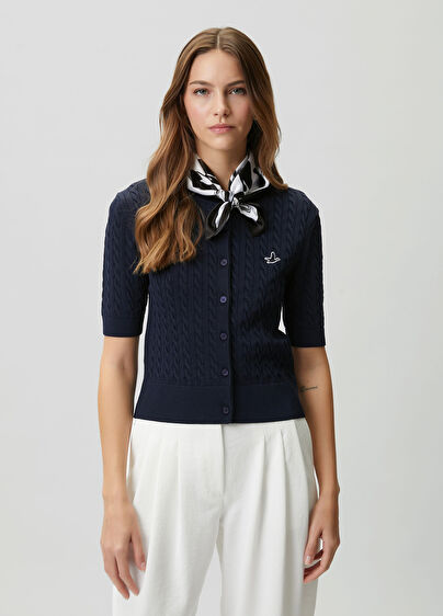 Lacivert Saç Örgü Mini Hırka