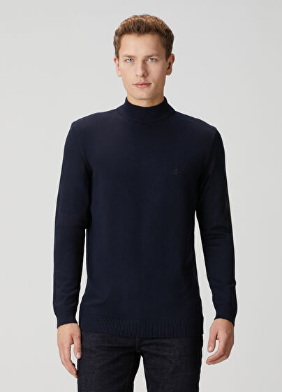 Yarım balıkçı yaka, düz renk, logo nakışlı kazak