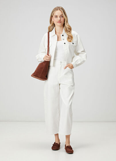 Yüksek (high-rise) bel, mom-fit jean pantolon