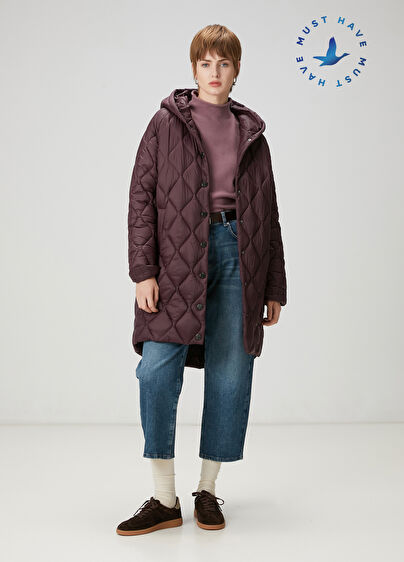 Kapüşonlu, çıtçıt kapatmalı, uzun mont