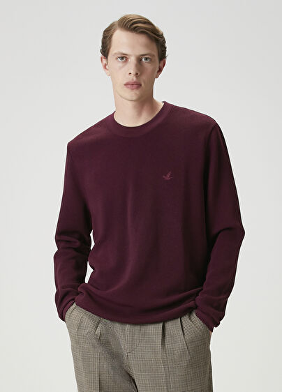 Bisiklet yaka, örgü dokulu, logo nakışlı kazak