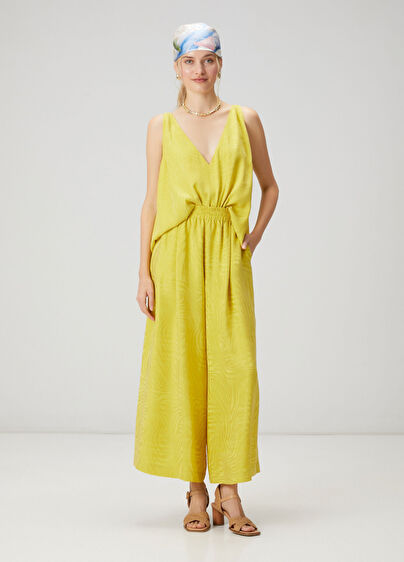 Neon Sarı İpek Görünümlü Jakarlı Pantolon