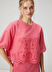Crew neck, balloon sleeves, perforated embroidered blouse