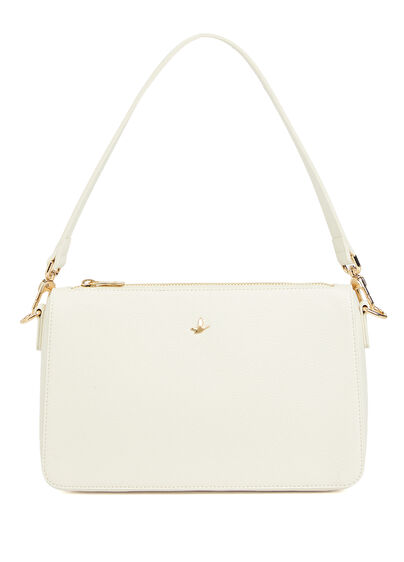 Çıkarılabilir omuz askılı ve kulplu, fermuar kapatmalı, düz renk çanta