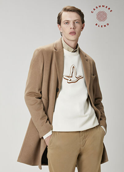 Kelebek yaka, düğme kapatmalı, kaşmir palto