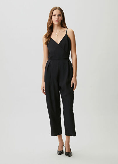 Siyah Anvelop Yaka Dökümlü Tulum