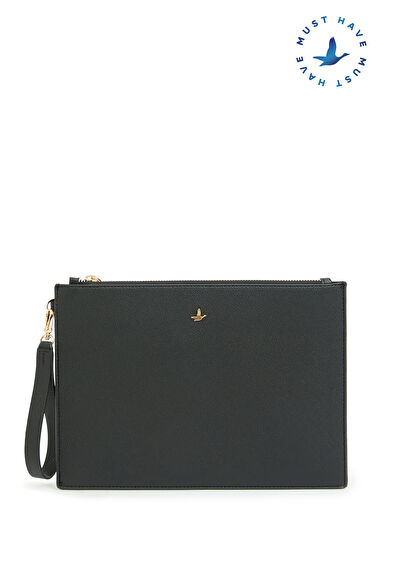 El askılı, fermuar kapatmalı, logolu el portföyü