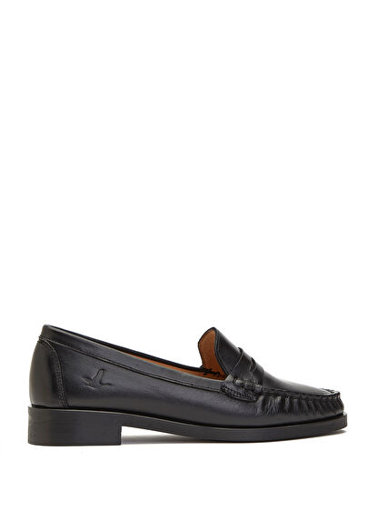 Yuvarlak burun, bantlı, napa deri loafer