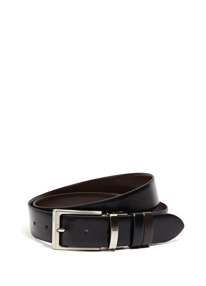 Siyah Kahve Çift Tokalı Erkek Deri Kemer