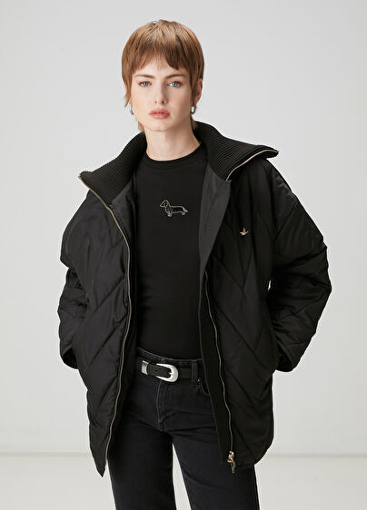 Büyük triko yaka, fermuar kapatmalı, zikzak kapitoneli mont