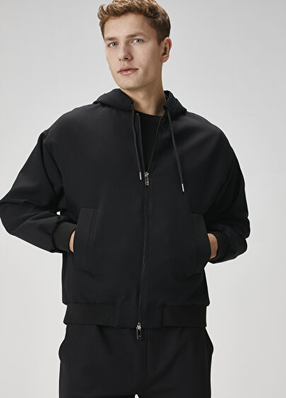 Kapüşonlu, çift sıra düğme kapatmalı mont