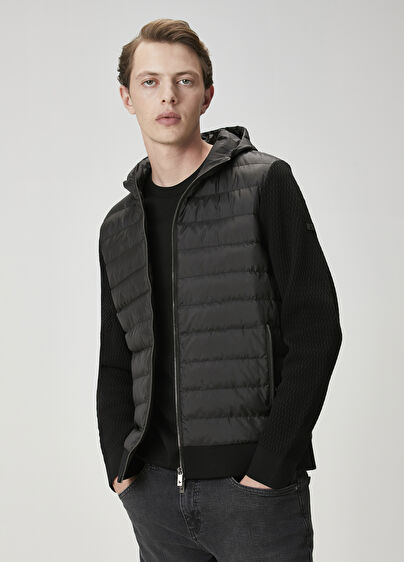 Kapüşonlu, fermuar kapatmalı, yün, triko mont