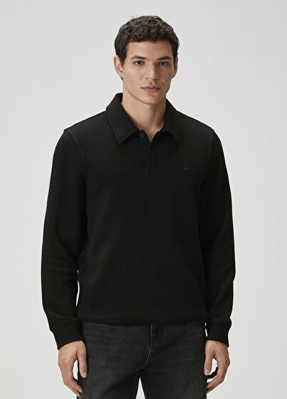 Polo yaka, fermuar kapatmalı, logo nakışlı sweatshirt
