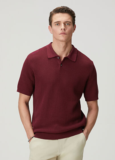 Beymen Club Vişne Polo Yaka Kısa Kollu Dokulu Triko