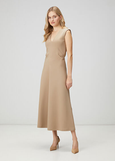 V yaka, kolsuz, midi boy elbise Drape detaylı Ürün bedeni: 36 / Model ölçüsü: Boy: 174 cm - Göğüs: 83 cm - Bel: 59 cm - Kalça: 88cm Yeni sezon hazır giyim alışverişlerinizde ücretsiz tadilat yapılmaktadır