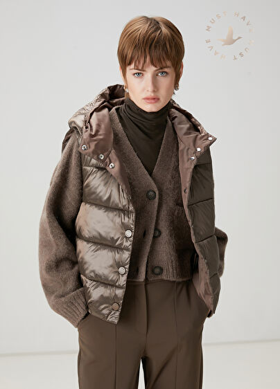 Kapüşonlu, çıtçıt kapatmalı, astarlı, puff yelek