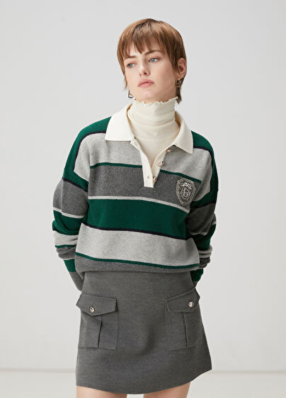 Polo yaka, düğmeli, yün kazak