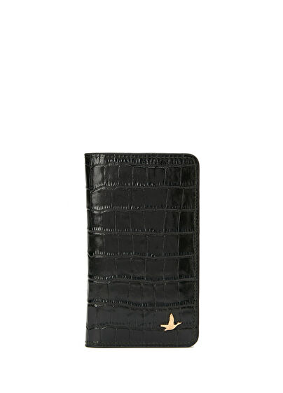 Logo detaylı, krokodil dokulu, deri cüzdan